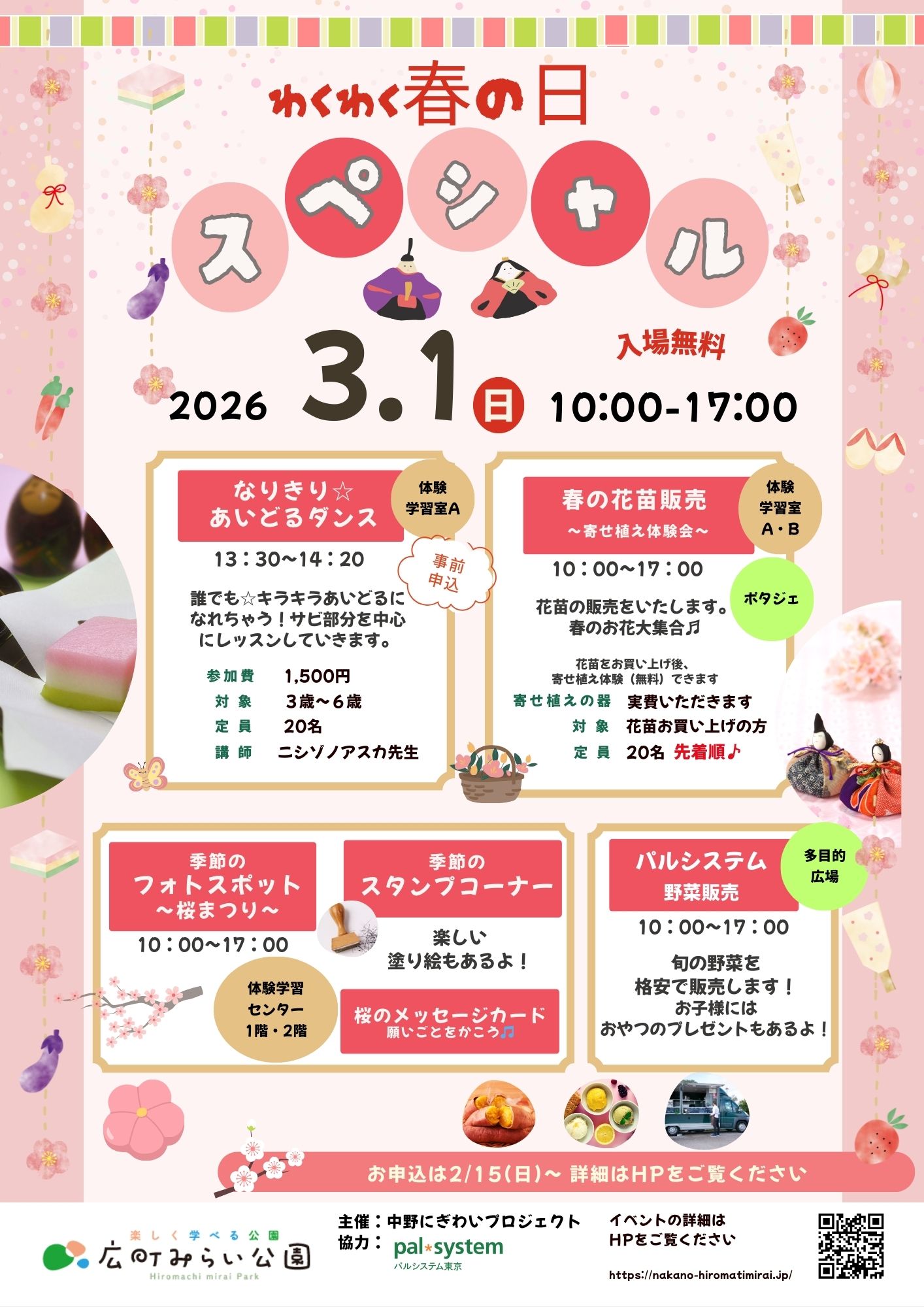 3/1(日)“わくわく春の日スペシャル”を開催します😊