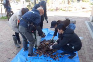 腐葉土は、1月の定例会で、園内の落ち葉を袋詰めして作ったものですが、まだ完成ではなく、