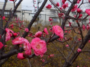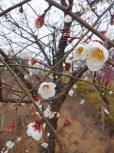 園内の梅が開花しました。
