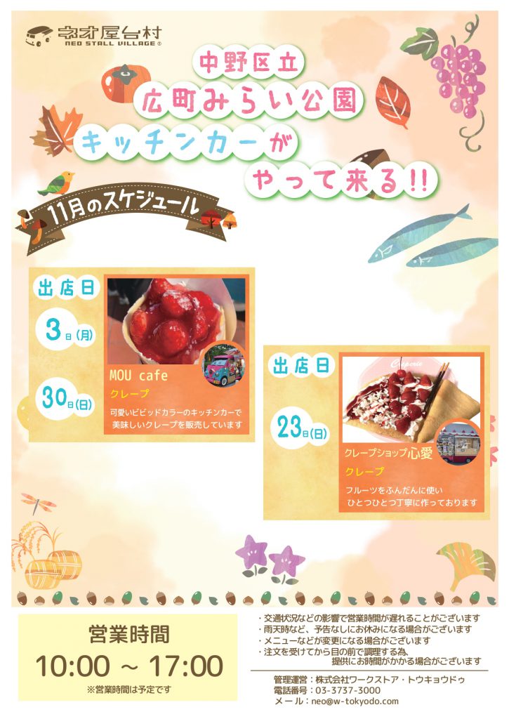 11月キッチンカー出店予定