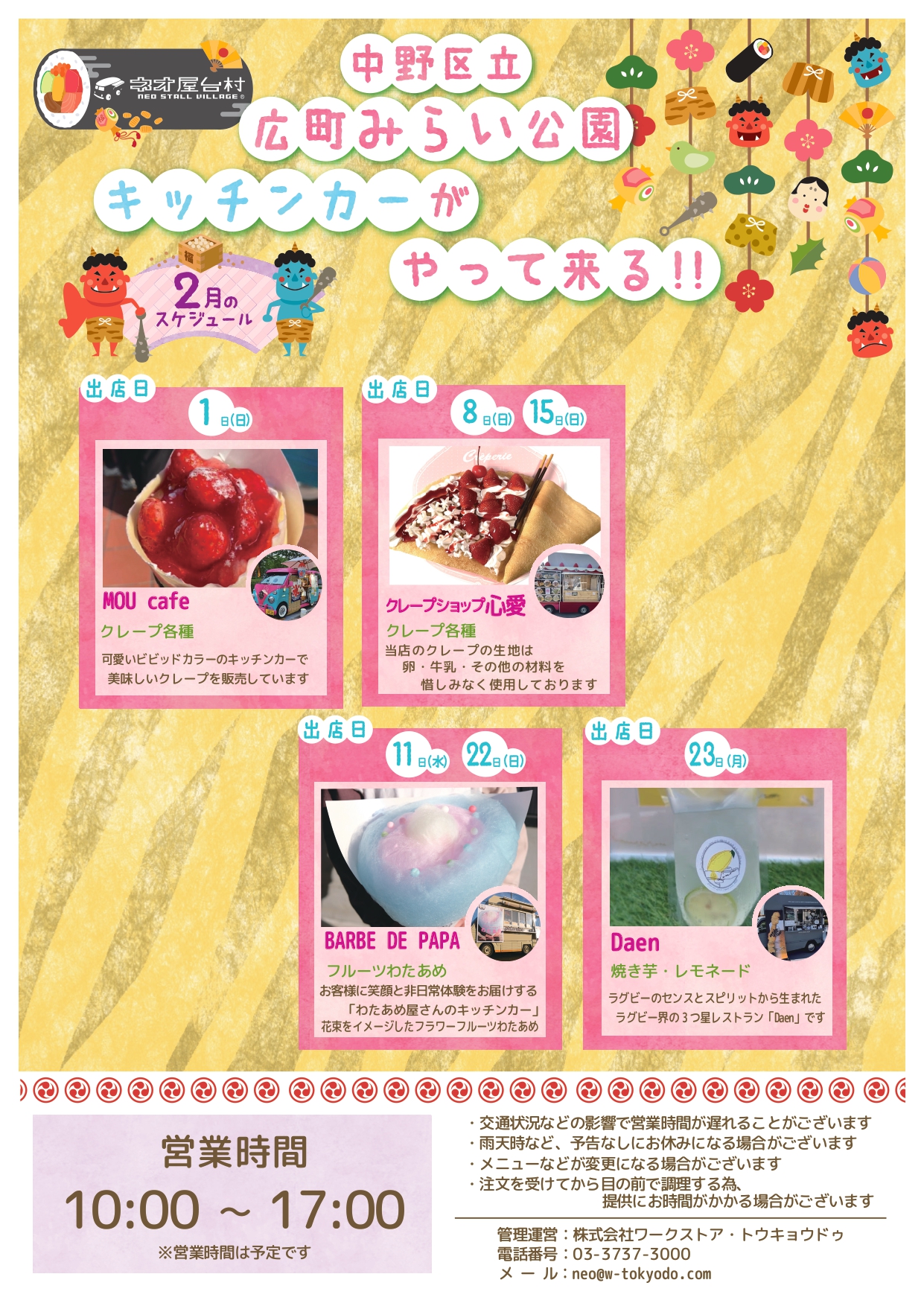 2月キッチンカー出店予定